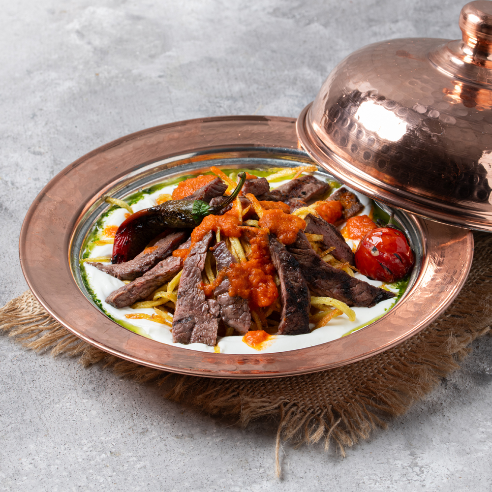 Dana lokum, paris sos, patates püresi, haşlanmış sebze