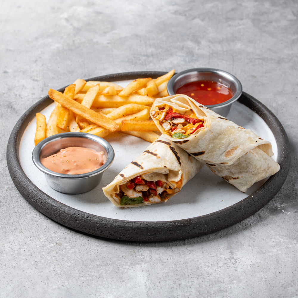Jülyan tavuk, Mexican fasulyesi, mısır, renkli biber, jelepone biberi, roka, kiraz domates, chedar peyniri, avokado sos, kremalı ekşi yoğurt